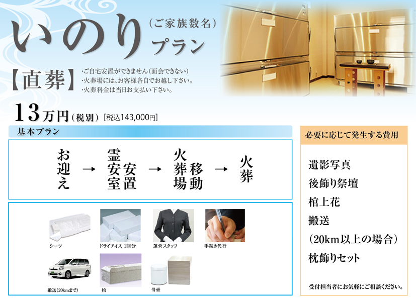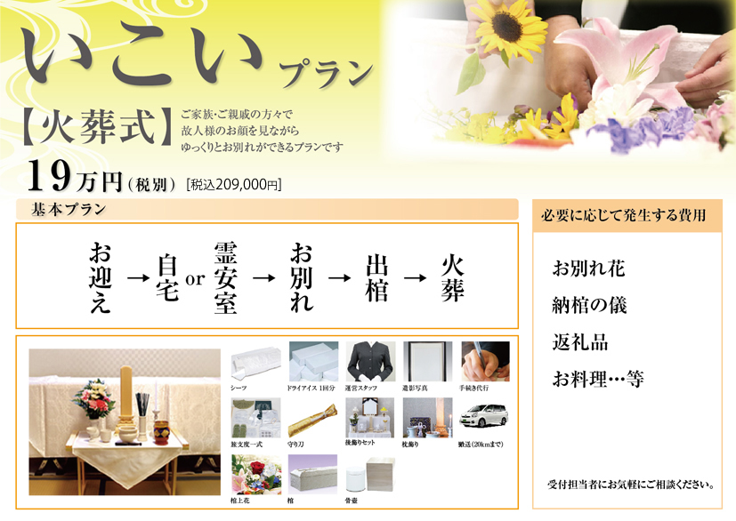 はなみずきでは、お客様のご希望にあわせ様々な葬儀プランをご用意しております。
